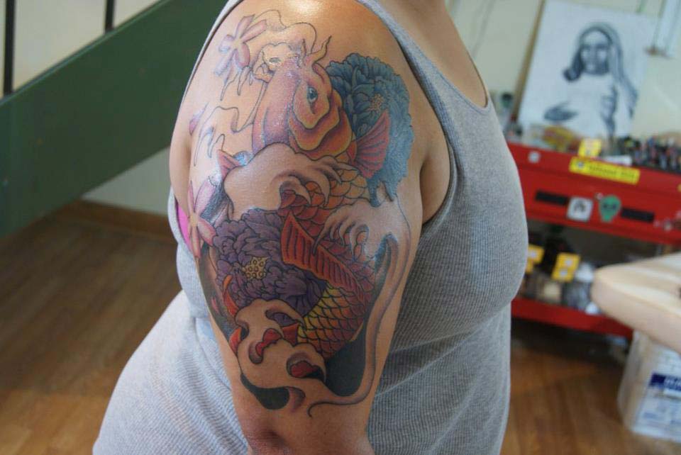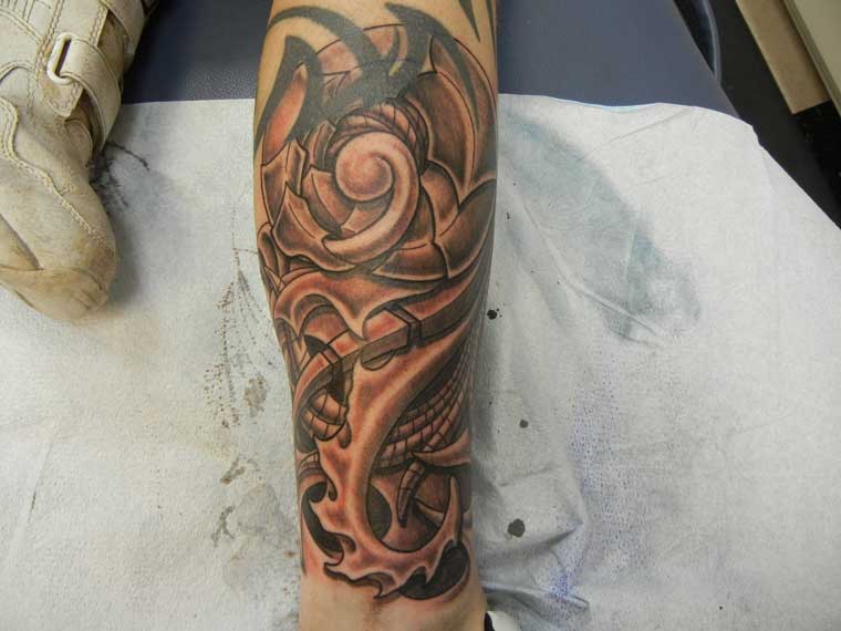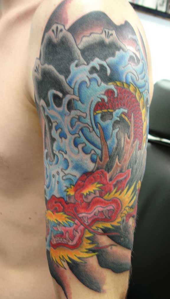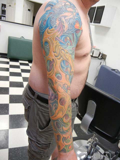My name is Ken Roper, I have been tattooing since December 1998. I am an award winning tattoo artist at Sonic Tattoos in Green Bay, Wisconsin. I enjoy doing oriental, traditional, and new/old school tattoos but am not opposed to other styles. I apprenticed under Rich Cseri at Forbidden Art formerly in DePere, WI, but I was lucky to be surrounded by other talented artists, such as Cliff Cox, Chris Gospoderek, and Stewart "DOC" Kinch, who also helped me along the way. I am also a member of the National Tattoo Association and the Alliance of Professional Tattooist. As far as influences there are too many to name but they know who they are. Other then tattooing I am into the outdoors, motorcycles, and hangin with the family.