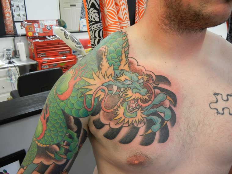 My name is Stephen Jones. I have been tattooing professionally for lets call it four years. Previously I was at 3rd Dimension in De Pere, WI for four years. I enjoy doing a little bit of everything but mostly I enjoy black and grey traditional (old skool), Asian style, and portraits. I am very excited to be a part of the Sonic Tattoos crew and am looking forward to growing as an artist and tattooist. I have a 5-year-old son Ian who is my life and inspiration. Other than hanging out with him in my spare time I enjoy painting and life and try to take advantage of what it has to offer at every moment.